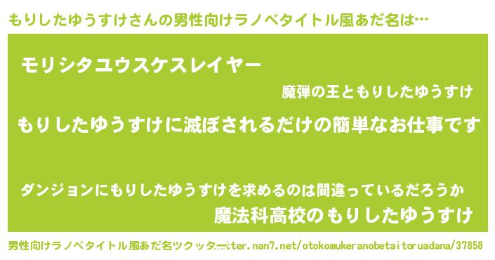 | 女子向けラノベタイトル風あだ名 | 『横柄もりしたゆうすけと宰相陛下』 |