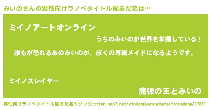 | 欧米人風あだ名 | 『ダルビッシュみいの』『マイケルみいの』 |