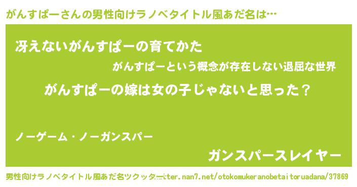| 女子向けラノベタイトル風あだ名 | 『がんすぱー様がみてる』 |