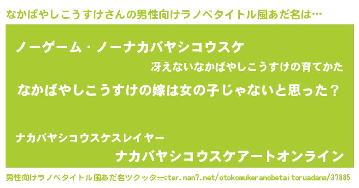 | 女子向けラノベタイトル風あだ名 | 『なかばやしこうすけ様がみてる』 |