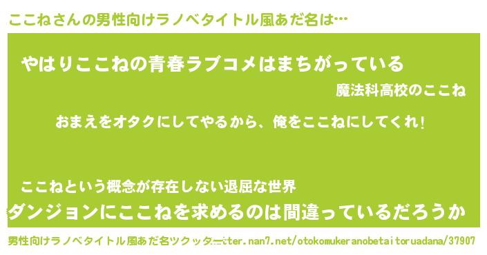 | 女子向けラノベタイトル風あだ名 | 『ここね夫妻のなれそめ』 |