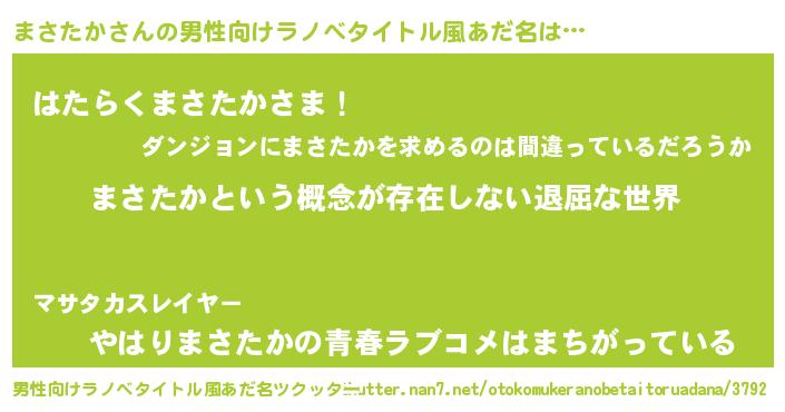 | 胡散臭い通販商品みたいなあだ名 | 『来世でも幸せになれる水素水…その名も「まさたか」』 |