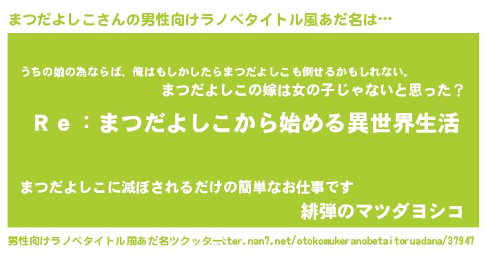 | 肩書あだ名 | 『まつだよしこ総統』『まつだよしこ船長』 |