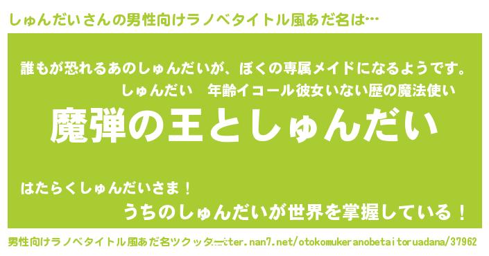 | 意味不明あだ名 | 『住所不定無職しゅんだい(7歳)』 |