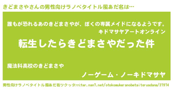 | 女子向けラノベタイトル風あだ名 | 『きどまさやの玉の輿計画!』 |