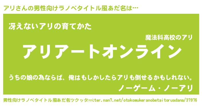 | ファンタジー風あだ名 | 『アリフェル』『カークアリラー』 |