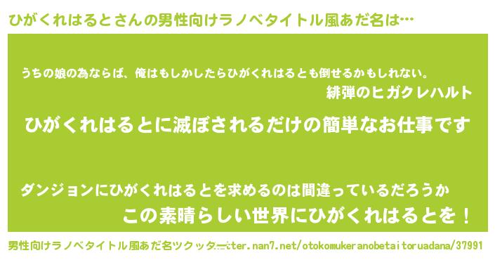 | ファンタジー風あだ名 | 『エターナルヒガクレハルトー』 |
