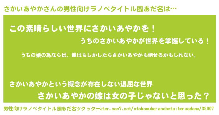 | 欧米人風あだ名 | 『さかいあやかクリステル』 |