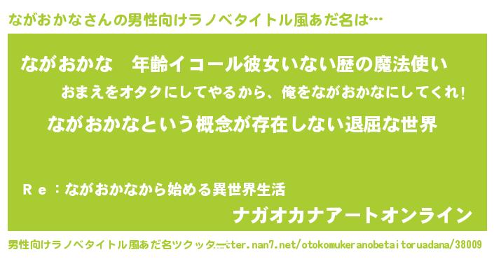 | 女子向けラノベタイトル風あだ名 | 『異世界で失敗しない100のながおかな』 |