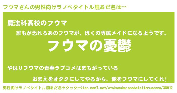 | 女子向けラノベタイトル風あだ名 | 『(仮)フウマのやんごとなき事情』 |