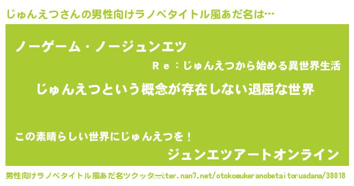 | 意味不明あだ名 | 『永久保存じゅんえつ』『自称じゅんえつ』 |