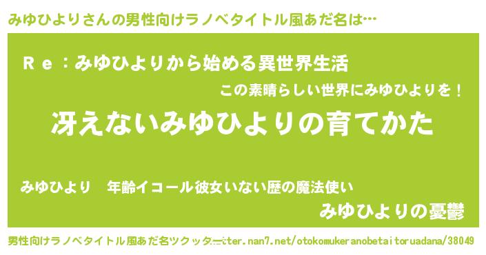 | ヒーロー風カッコイイあだ名 | 『サイバー戦士ミユヒヨリ』 |