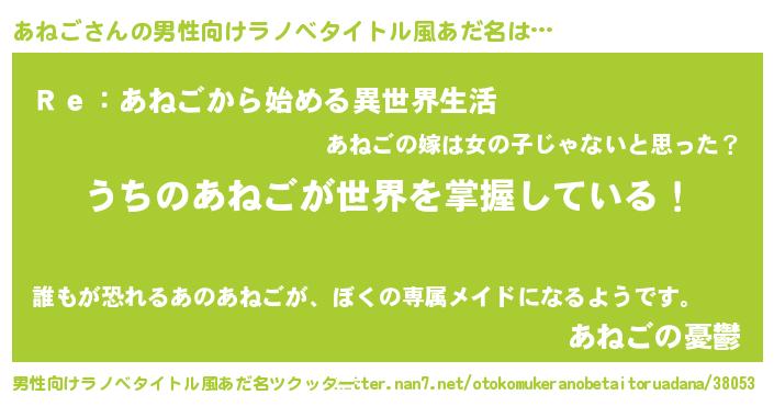 | ヘコむあだ名 | 『あねもー』『あねっぺ』『酢こんぶ』 |