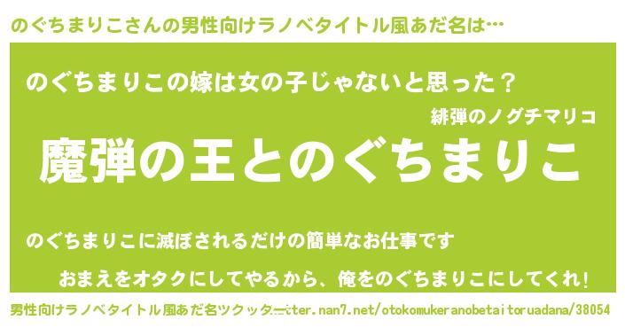 | 女子向けラノベタイトル風あだ名 | 『のぐちまりこが死なない童話 林檎ののぐちまりこの診療簿』 |