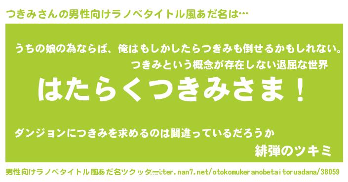 | ヘコむあだ名 | 『つくし』『つきみ(爆)』『つきお』 |