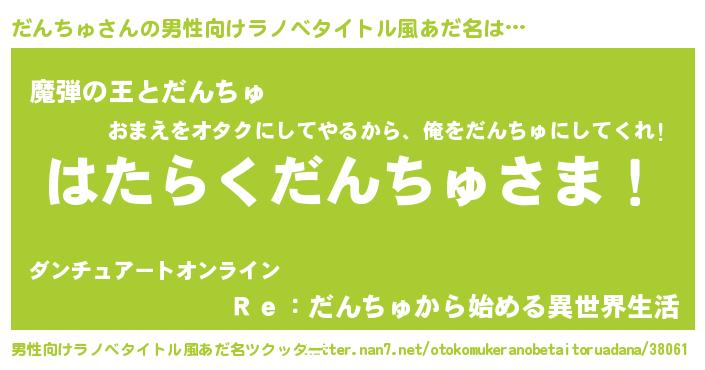 | 意味不明あだ名 | 『住所不定無職だんちゅ(56歳)』 |