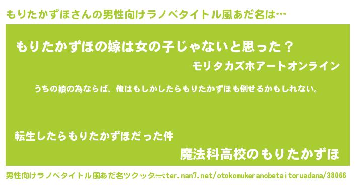 | 女子向けラノベタイトル風あだ名 | 『もりたかずほ伯爵の花嫁』 |