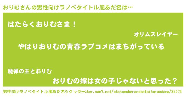 | 女子向けラノベタイトル風あだ名 | 『おりむ伯爵の花嫁』『おりむ様がみてる』 |