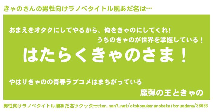 | 女子向けラノベタイトル風あだ名 | 『首の姫と首なしきゃの』『きゃの恋絵巻』 |