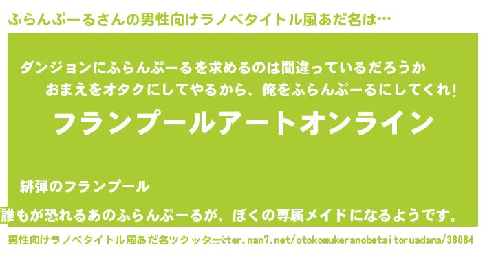 | 胡散臭い通販商品みたいなあだ名 | 『モテモテ間違いなしブレスレット…その名も「ふらんぷーる」』 |