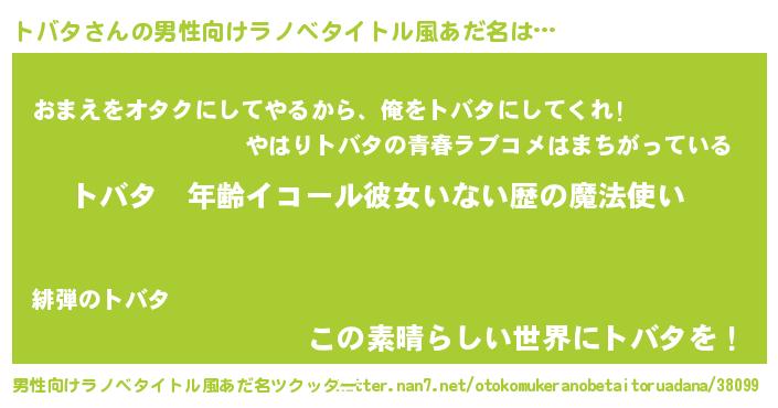 | ヘコむあだ名 | 『レバニラ』『トバお』『トバタ(笑)』 |