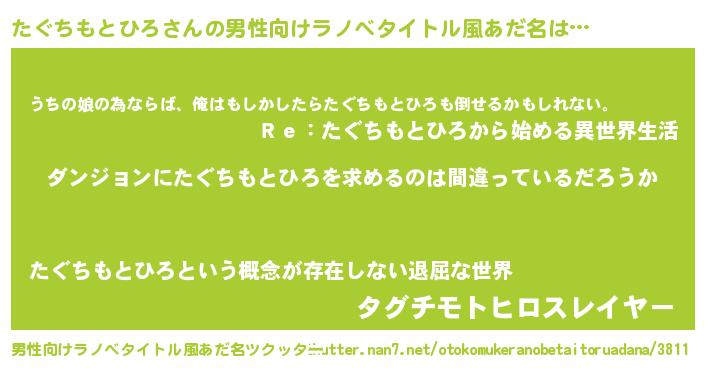 | ヒーロー風カッコイイあだ名 | 『暗黒騎士タグ』『ネオタグチモトヒロ』 |