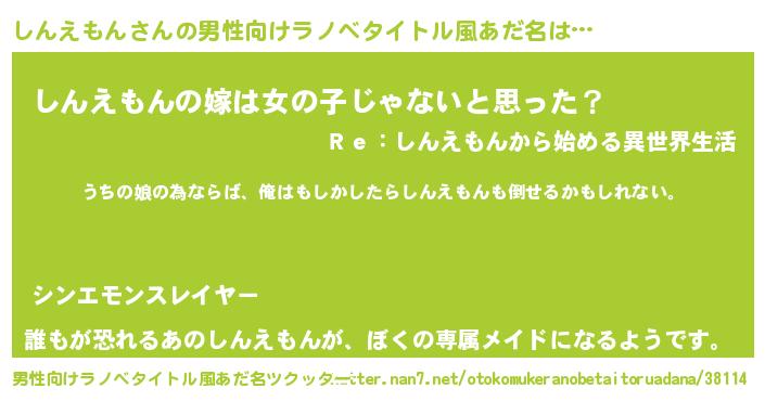 | 女子向けラノベタイトル風あだ名 | 『しんえもんの婚約者』『闇のしんえもん』 |