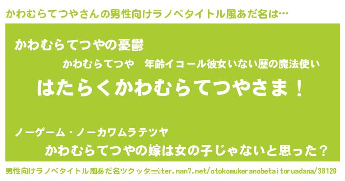 | 胡散臭い通販商品みたいなあだ名 | 『モテモテ間違いなし水晶球…その名も「かわむらてつや」』 |
