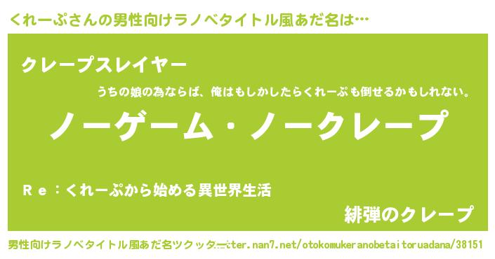 | 女子向けラノベタイトル風あだ名 | 『くれーぷ恋絵巻』『くれーぷの婚約者』 |