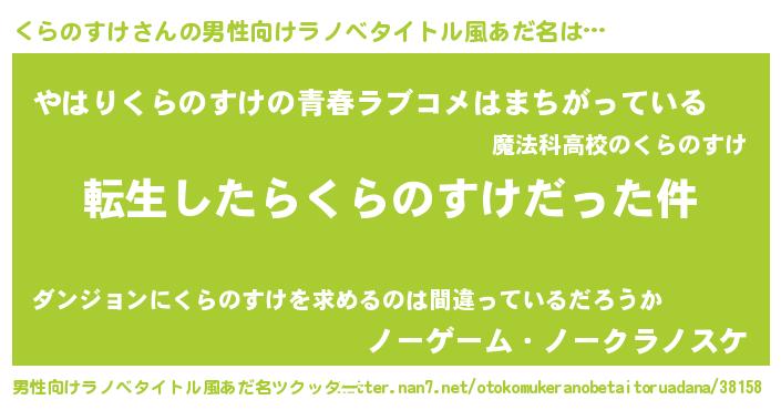 | 女子向けラノベタイトル風あだ名 | 『くらのすけの玉の輿計画!』 |