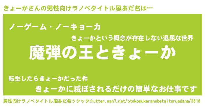 | 料理風あだ名 | 『きょーかのカルパッチョ風』 |