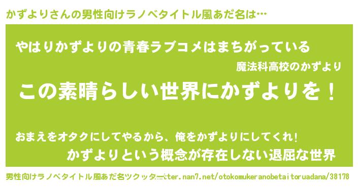 | ヘコむあだ名 | 『酢こんぶ』『かずより(苦笑)』 |