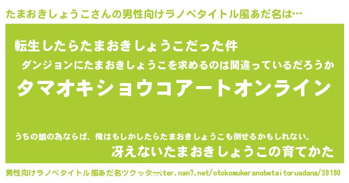 | ツイッター | たまおきしょうこさんのツイッターID『fukuyoka_kun』 |