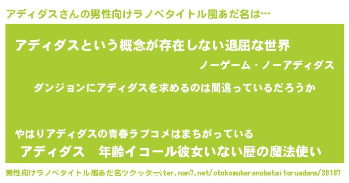 | 女子向けラノベタイトル風あだ名 | 『アディダスの卵を拾いまして』 |