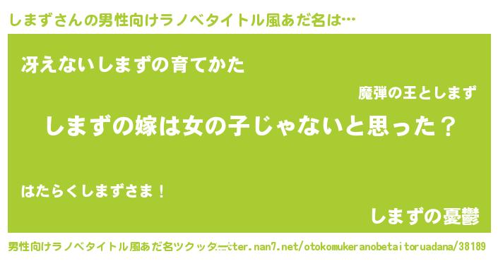 | 女子向けラノベタイトル風あだ名 | 『しまずの卵を拾いまして』 |
