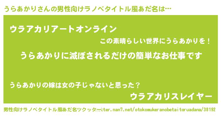 | ヒーロー風カッコイイあだ名 | 『スーパーウラアカリ』『仮面ウラダー』 |