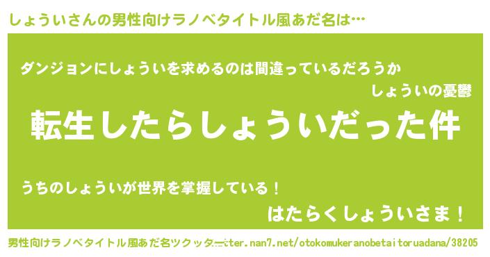 | ヒーロー風カッコイイあだ名 | 『魔戒騎士ショ』『スーパーショウイ』 |