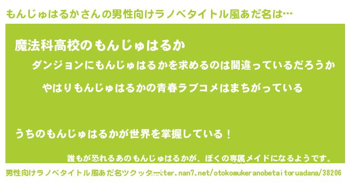 | 女子向けラノベタイトル風あだ名 | 『もんじゅはるかの雑貨屋さん』 |