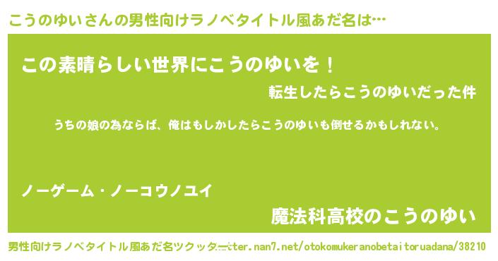 | 女子向けラノベタイトル風あだ名 | 『こうのゆいの婚約者』 |