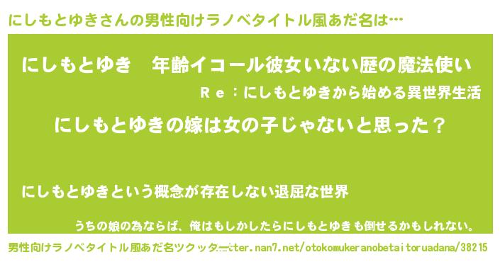 | 肩書あだ名 | 『にしもとゆき塾長』『にしもとゆき大将』 |