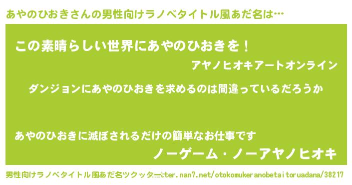 | 胡散臭い通販商品みたいなあだ名 | 『信頼と実績のペンダント…その名も「あやのひおき」』 |