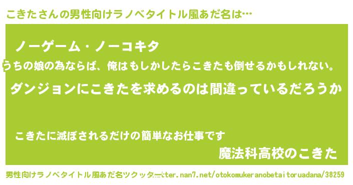 | 意味不明あだ名 | 『とにかく怪しいこきた』『自称こきた』 |