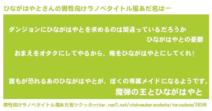 | 女子向けラノベタイトル風あだ名 | 『ひながはやと恋絵巻』 |
