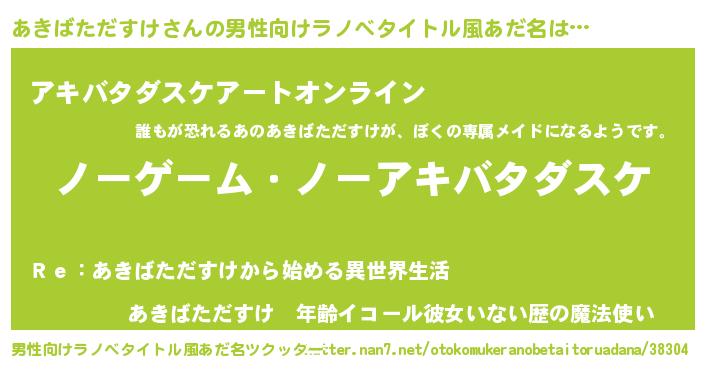 | 女子向けラノベタイトル風あだ名 | 『死神あきばただすけの再婚』 |