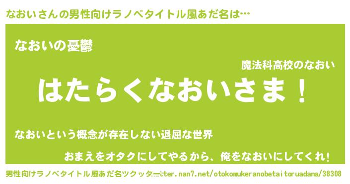 なおいさんの男性向けラノベタイトル風あだ名をツクッター!