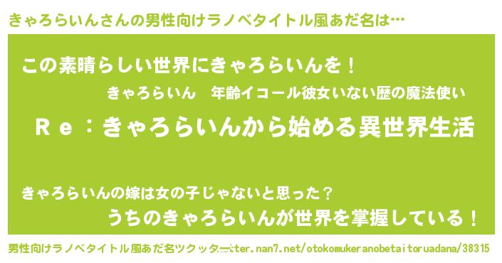 | 意味不明あだ名 | 『自称きゃろらいん』 |