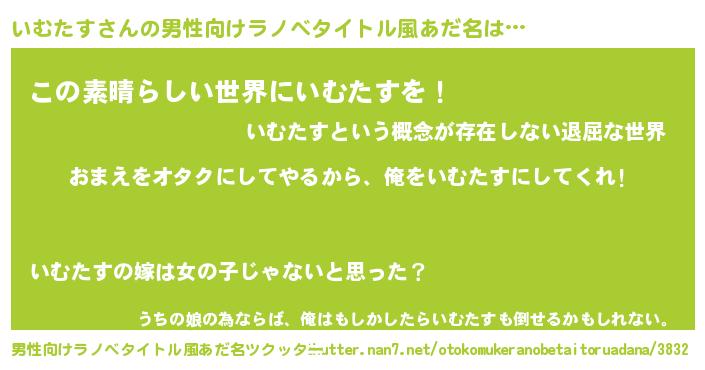 | 胡散臭い通販商品みたいなあだ名 | 『100人中100人が認めたイリジウム磁石…その名も「いむたす」』 |