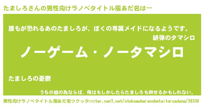 | 女子向けラノベタイトル風あだ名 | 『死神たましろの再婚』 |