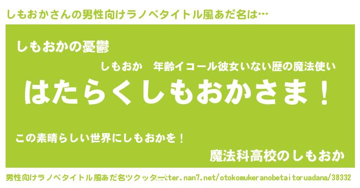 | 胡散臭い通販商品みたいなあだ名 | 『モテモテ間違いなしブレスレット…その名も「しもおか」』 |