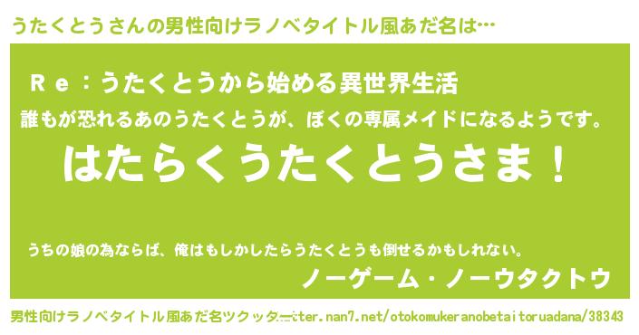 | 意味不明あだ名 | 『自称うたくとう』『永久保存うたくとう』 |